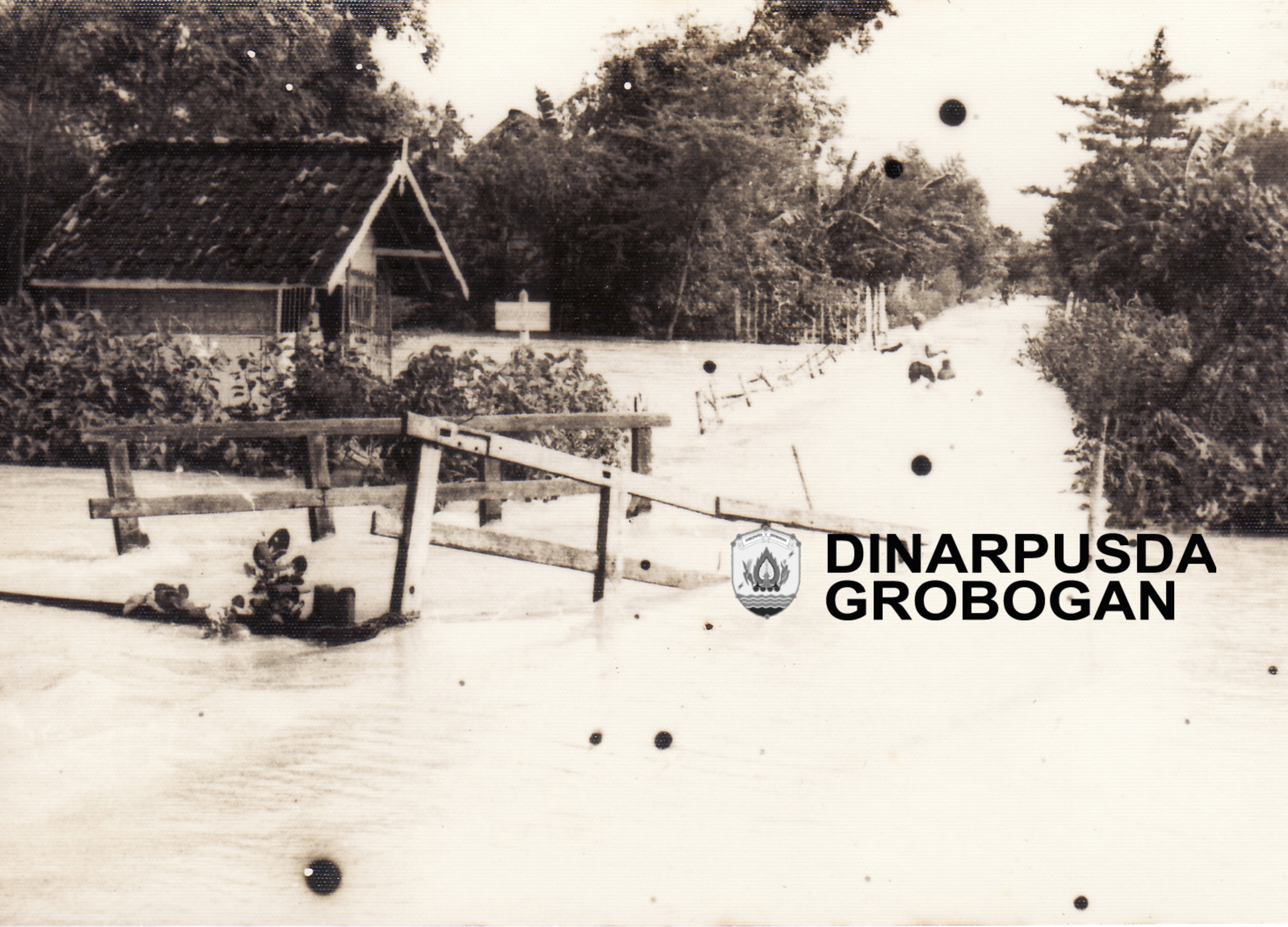 JALAN RAYA PURWODADI - SEMARANG YANG HAMPIR PUTUS DILANDA BANJIR TERPAKSA DIBUATKAN TANGGUL DARURAT TGL 28-1-1971