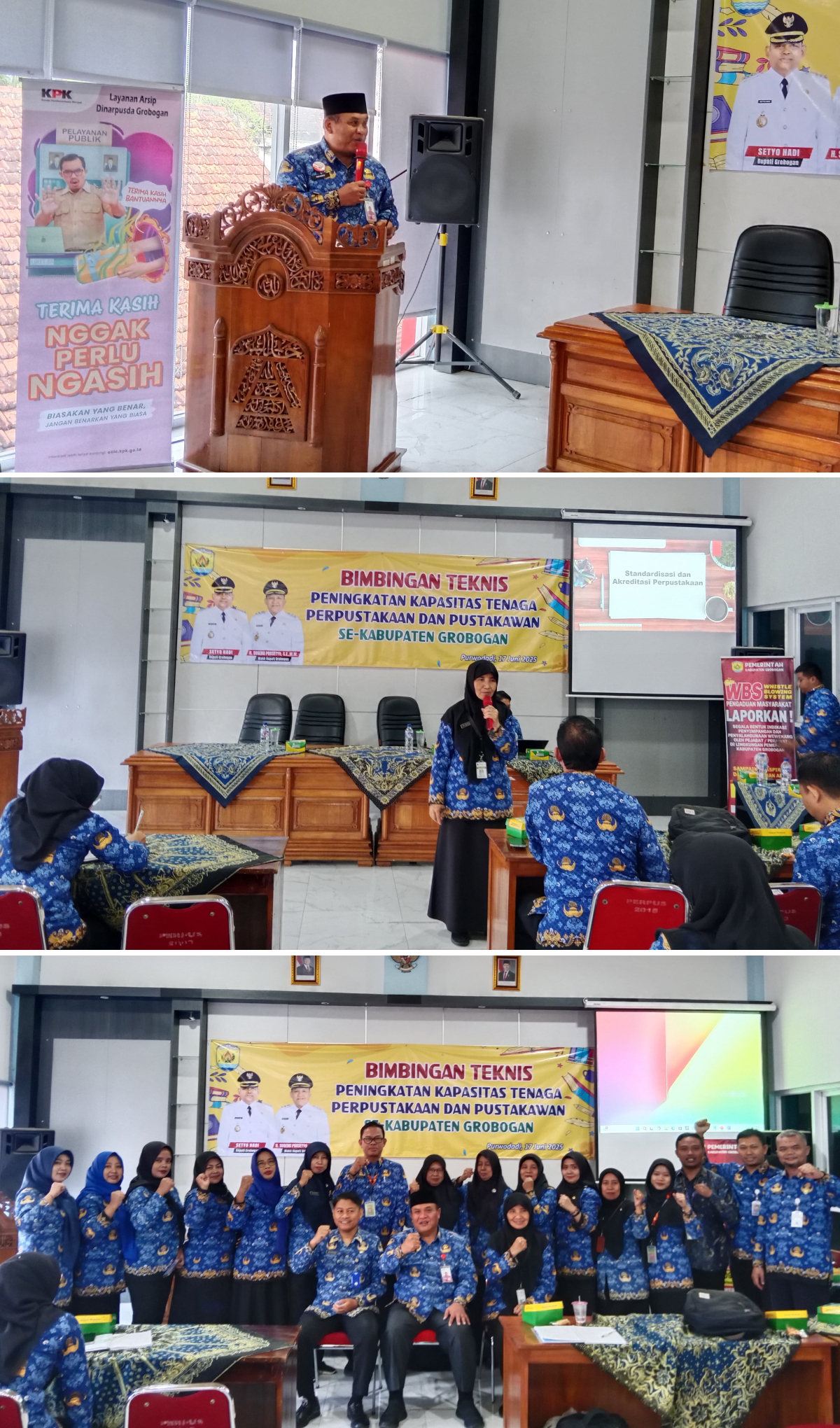 Selasa, 17 Juni 2025 — Dalam upaya meningkatkan kualitas pengelolaan perpustakaan dan kapasitas pustakawan di Kabupaten Grobogan, Dinas Kearsipan dan Perpustakaan Daerah Kabupaten Grobogan menyelenggarakan kegiatan Bimbingan Teknis Peningkatan Kapasitas Tenaga Perpustakaan dan Pustakawan, yang berlangsung di Aula Dinarpusda. Kegiatan ini mengangkat tema “Akreditasi Perpustakaan Sekolah dan Umum” sebagai fokus utama pembahasan.