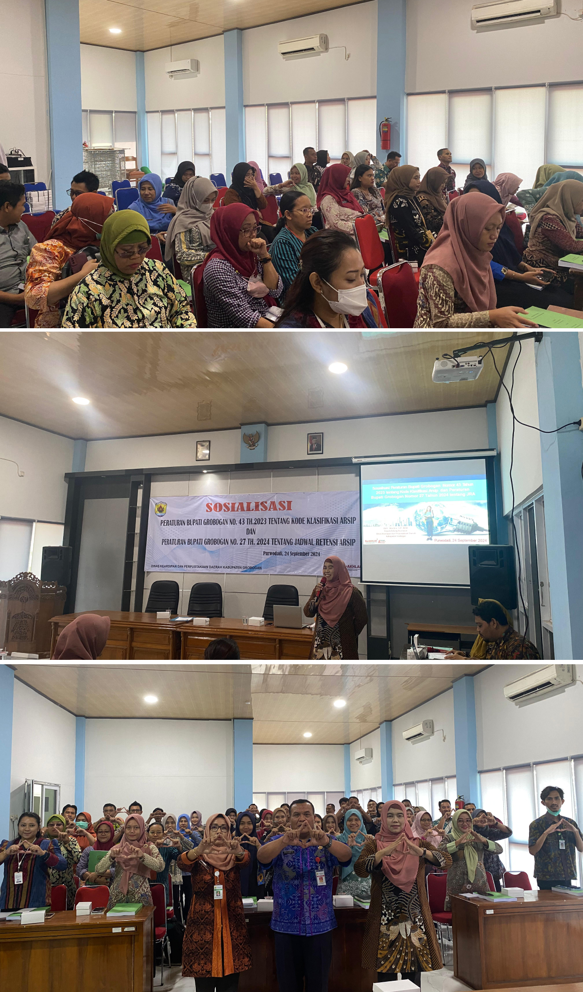 Pada hari Rabu, 24 September 2024, Dinas Kearsipan dan Perpustakaan Daerah Kabupaten Grobogan menyelenggarakan kegiatan Sosialisasi Peraturan Bupati Grobogan No. 43 Th. 2023 tentang Kode Klasifikasi Arsip dan Peraturan Bupati Grobogan No. 27 Th. 2024 tentang Jadwal Retensi Arsip. Kegiatan yang berlangsung dengan penuh antusiasme ini bertempat di Aula Dinas Kearsipan dan dihadiri oleh para Kasubag Umum Perangkat Daerah dan RSUD se Kabupaten Grobogan